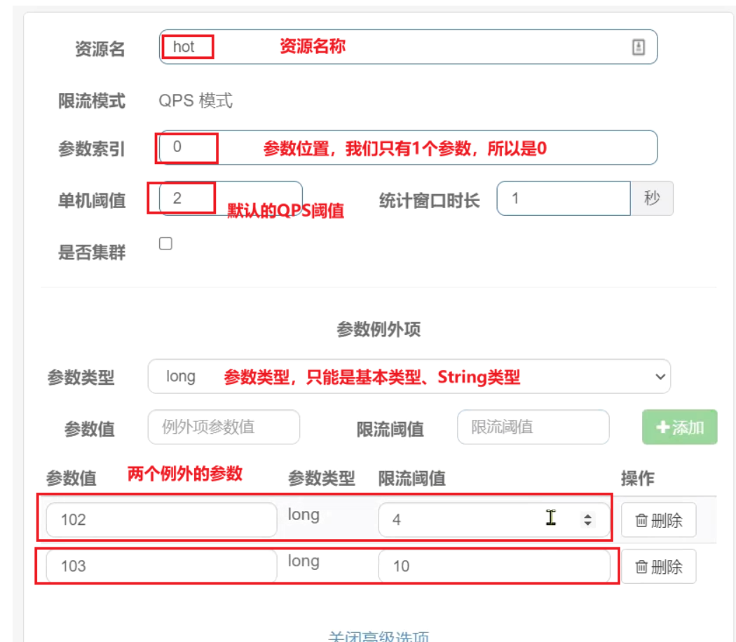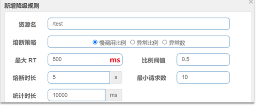 表单中可以填写限流规则,如下: