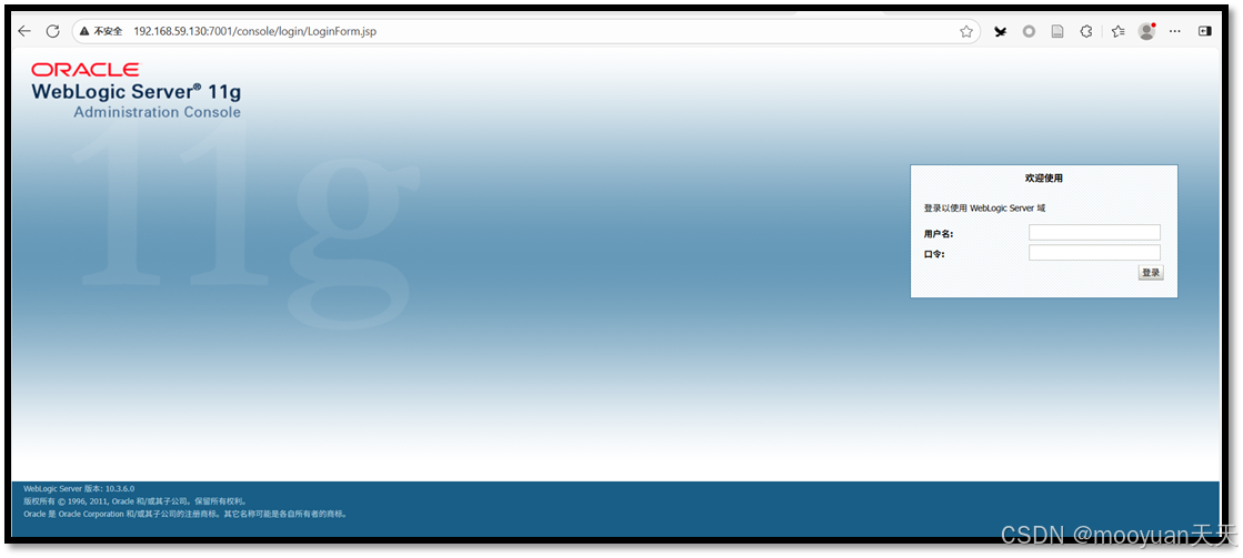 访问192.168.59.130的7001端口,使用web浏览器打开,具体如下所示。