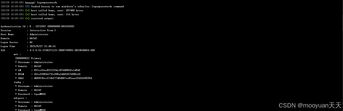 攻击场景:攻击者已获取域管理员的凭据(通过密码喷洒、凭证窃取等方式),现在要在当前会话中创建该用户的令牌,以便以管理员身份执行操作。