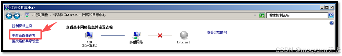 点击页面左上角的"更改适配器设置",如下图红框所示。