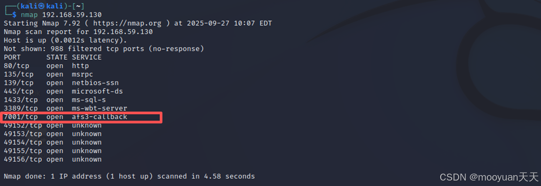 根据Nmap扫描结果,目标主机 192.168.59.130 是一个Windows服务器,开放了多个重要服务端口。以下是详细分析: