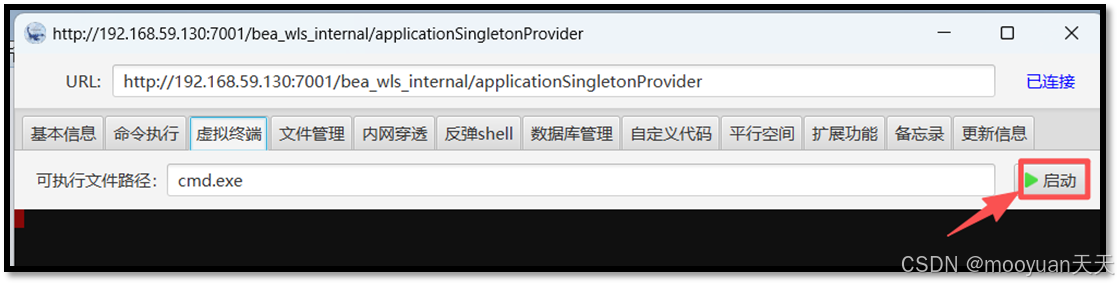 3、冰蝎中运行baecon文件mooyuan2008-http-x64.exe