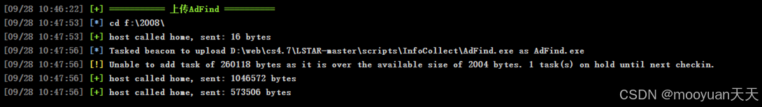 进入到cs的载荷mooyuan2008-http-x64.exe的上传目录中,执行载荷,如下所示。