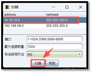 发现存活主机为10和80,由于80是192.168.59.130的另一个网卡,故而目前同一网段仅包括10.10.10.10,如下所示。