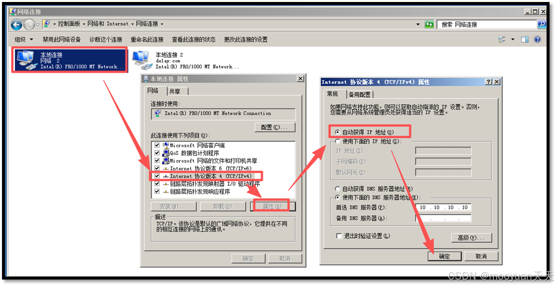 点击网络-配置-ipv4-属性,将静态配置固定的IP地址改为自动获得ip地址。