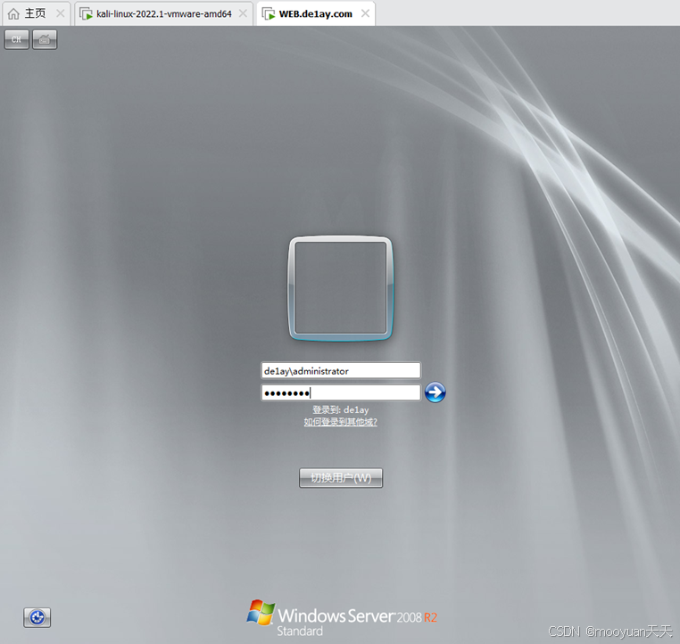 打开Web服务虚拟机,使用其他用户登录,用户名DE1AY\Administrator 密码1qaz@WSX。