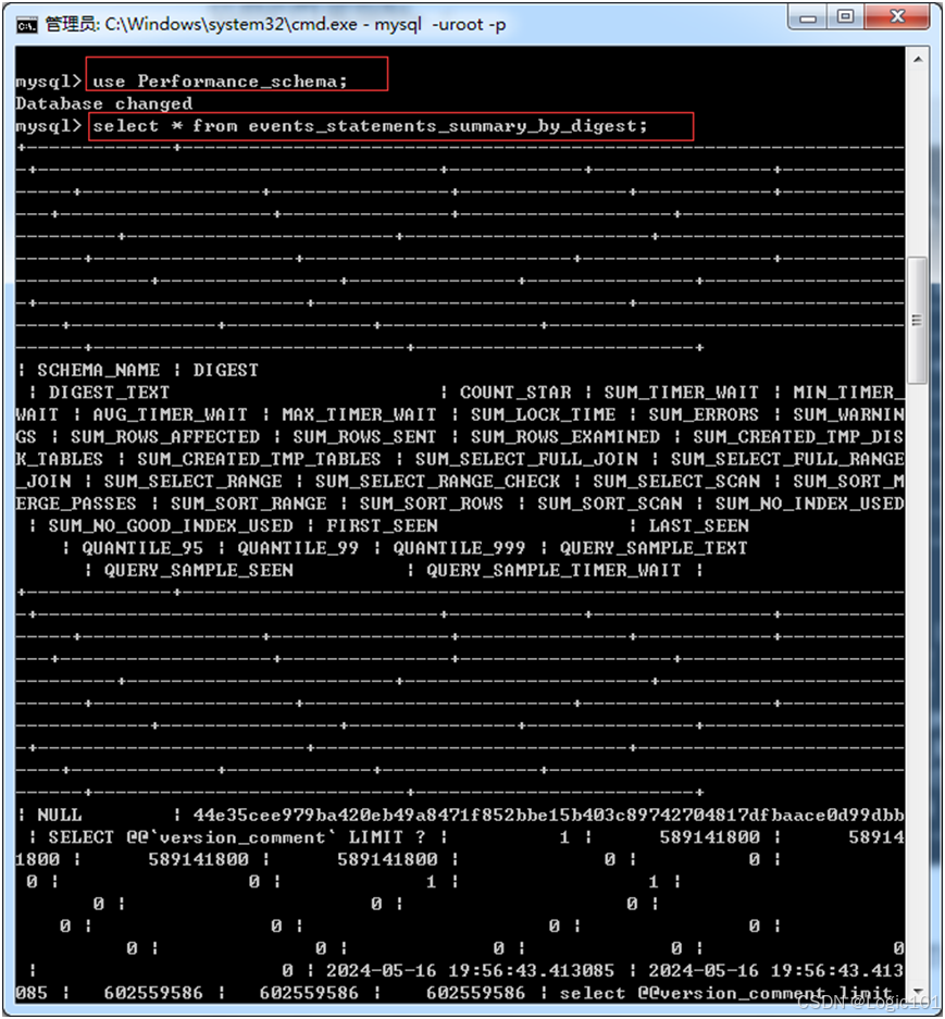 【实验5-2】访问Performance_schema中的events_statements_summary_by_digest表,获取有关的延迟、错误和查询量信息的性能指标。