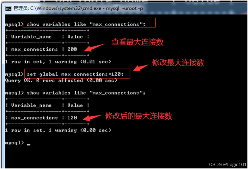 【实验5-17】查询SQL的最大连接数并修改其至合适的数值。