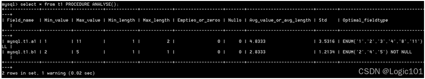 【实验5-14】使用PROCEDURE ANALYSE检查表列。