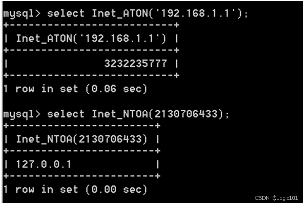【实验5-15】使用Inet_ATON将IP地址192.128.1.1转换为数字,再将2130706433转换为IP地址。