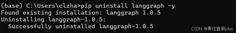 删除之前通过pip install安装在用户目录的langgraph包,不卸载后续是安不上的,因为pip install安装包的时候除了在conda环境中检查包存不存在,也会检查用户安装目录中是否存在,如果存在就不安装,就会导致我们安装不了