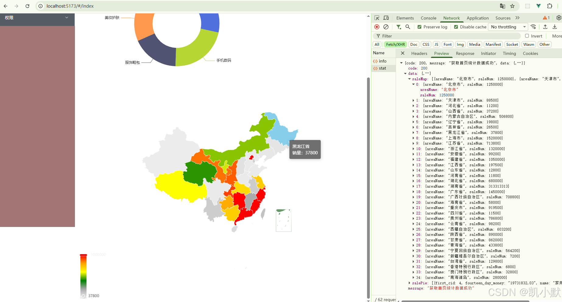 首先我们在 pie-map.json 里面添加地图销售数据