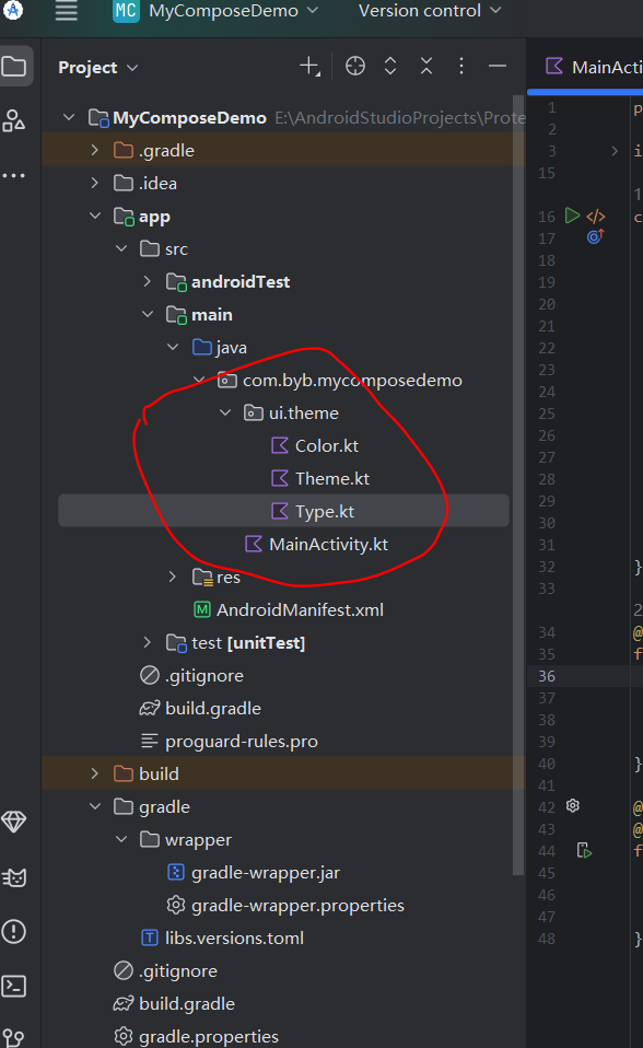 当使用Compose之后下,相关的颜色、主题等资源需要按照如下图所存放: