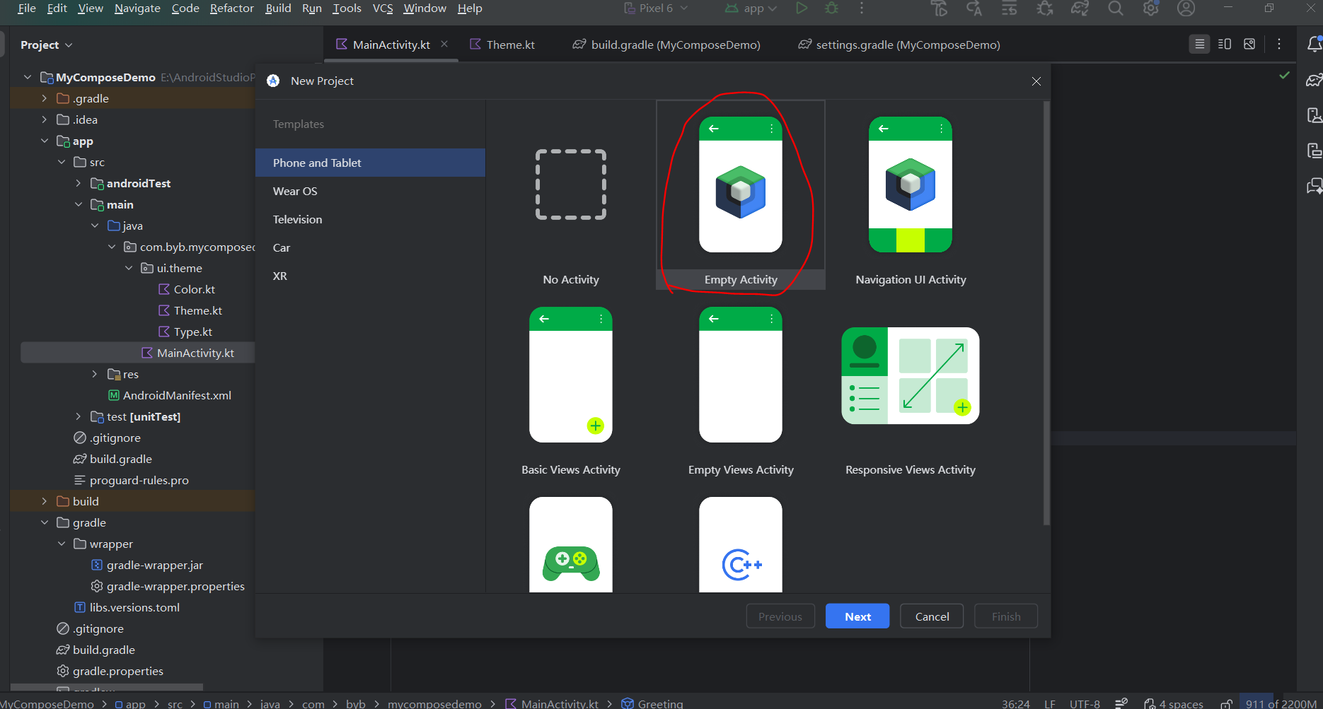 创建Compose的项目,并选择Empty Activity