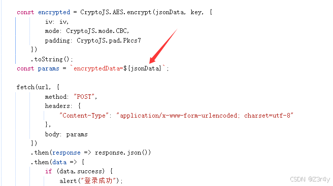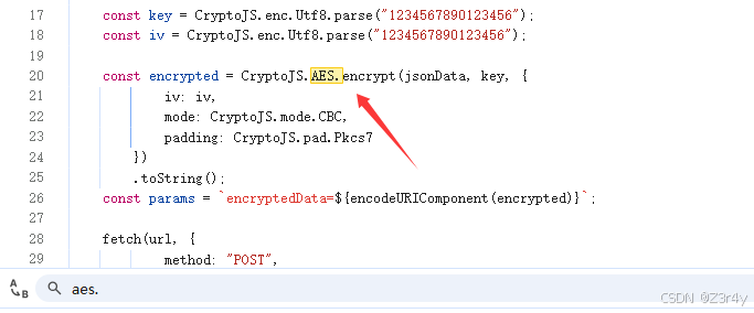const encrypted = CryptoJS.AES.encrypt(param, key, {