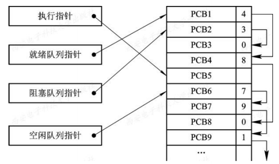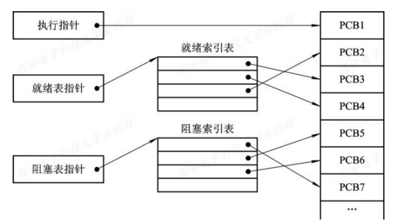 索引方式:根据进程不同的状态建立几张索引表,通过记录PCB在PCB表中的地址来进行指针调用