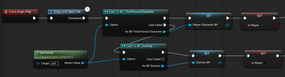 - 由于此组件应用在多个蓝图,其内调用的函数会不匹配;此时调用Decrease Health,会报错;