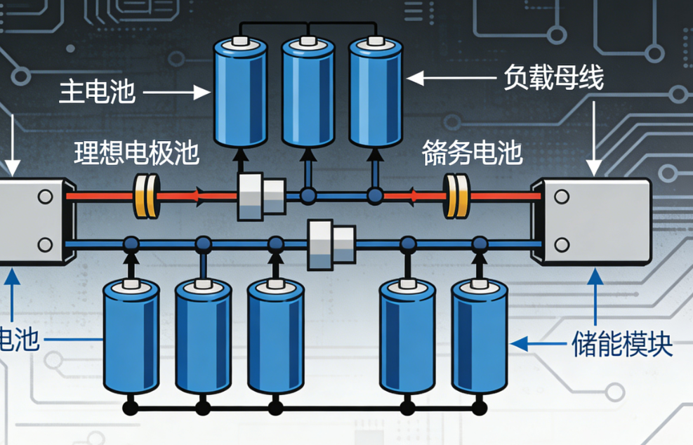 - 主备电池并联架构:主电池与备用电池通过各自的单向导通器件(如理想二极管、MOSFET)并联连接至负载母线。理想二极管或 MOSFET 的作用是防止电池之间的反向电流,确保主电池供电时备用电池不放电,同时在切换过程中快速导通备用电池回路。该架构的优势在于切换路径短,响应速度快,可有效降低切换过程中的电压跌落。