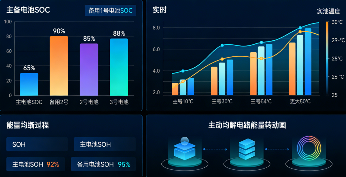 电池状态监测(BMS)是实现智能切换与电池保护的前提,而均衡管理则保障多备用电池的一致性,延长电池组整体寿命。