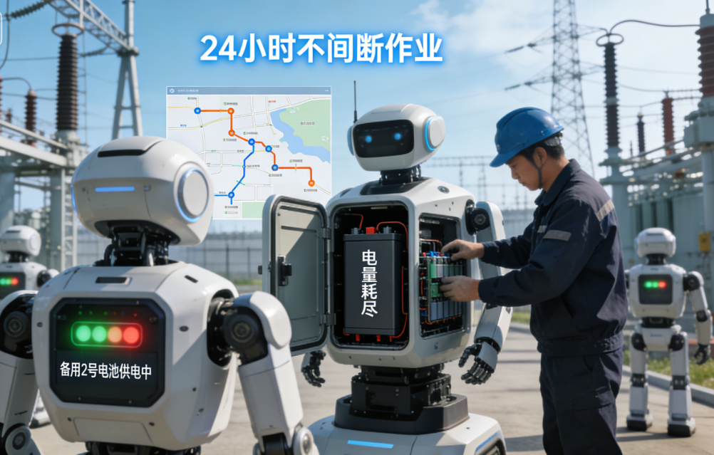 机器人作为自动化技术的核心载体,其作业范围已从结构化工厂环境拓展至复杂动态的户外场景、精密操作的医疗场景等。在长时间连续作业需求下,单一电池的续航能力难以满足实际需求,而传统电池更换方式需中断机器人运行,不仅降低作业效率,还可能导致关键数据丢失或作业流程中断。例如,工业巡检机器人若在高压设备巡检中因供电中断停机,可能错过设备故障预警时机;医疗手术机器人的供电中断则直接威胁患者生命安全。