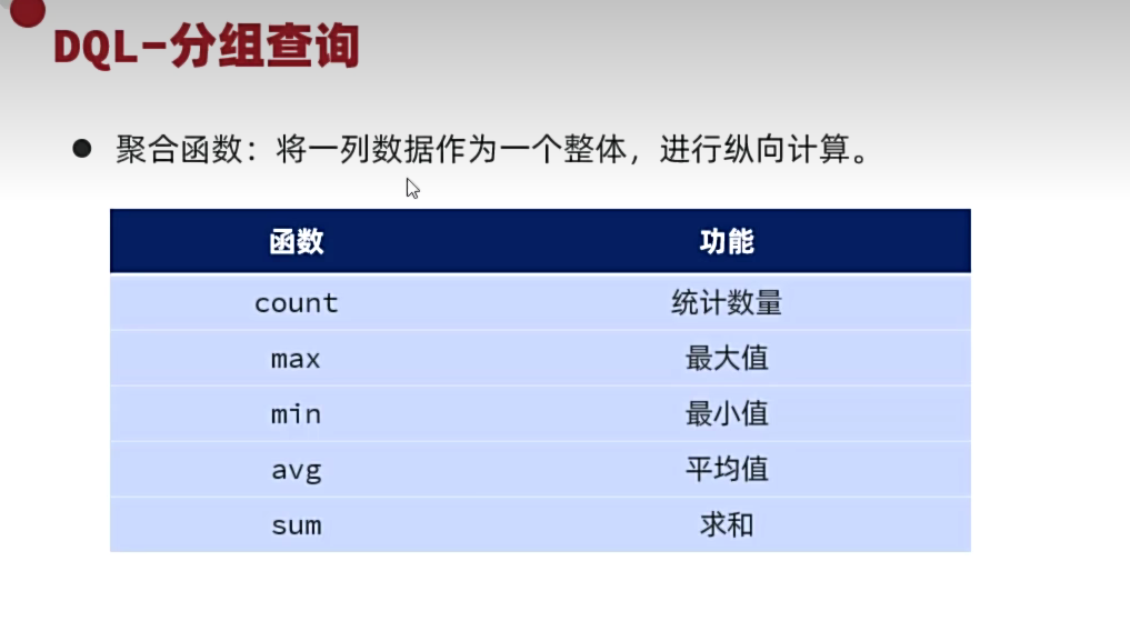 聚合函数:
