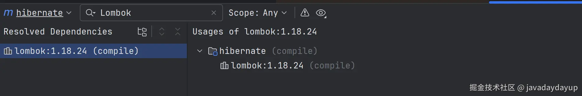 项目依赖的 lombok 版本是 1.18.24 ,如下图所示: