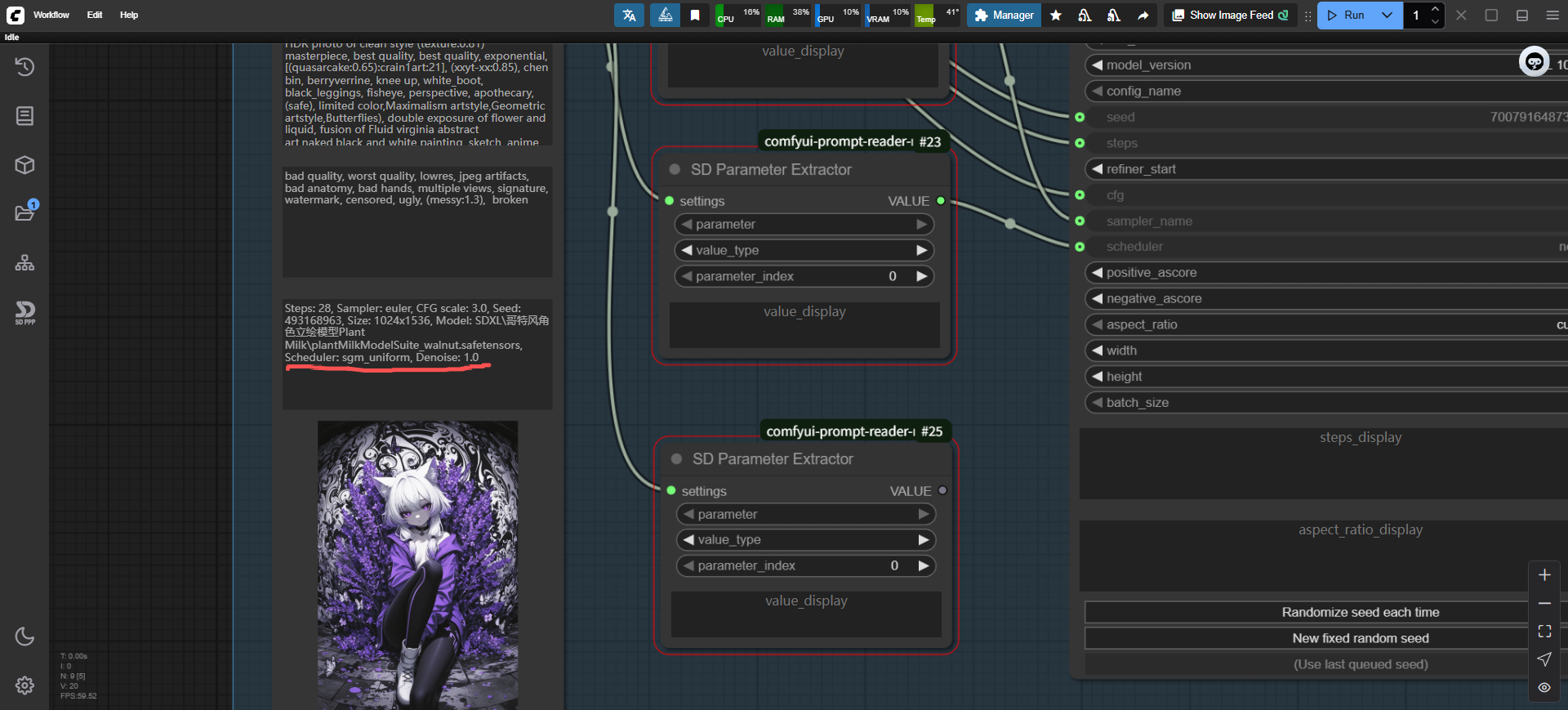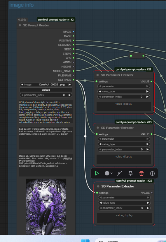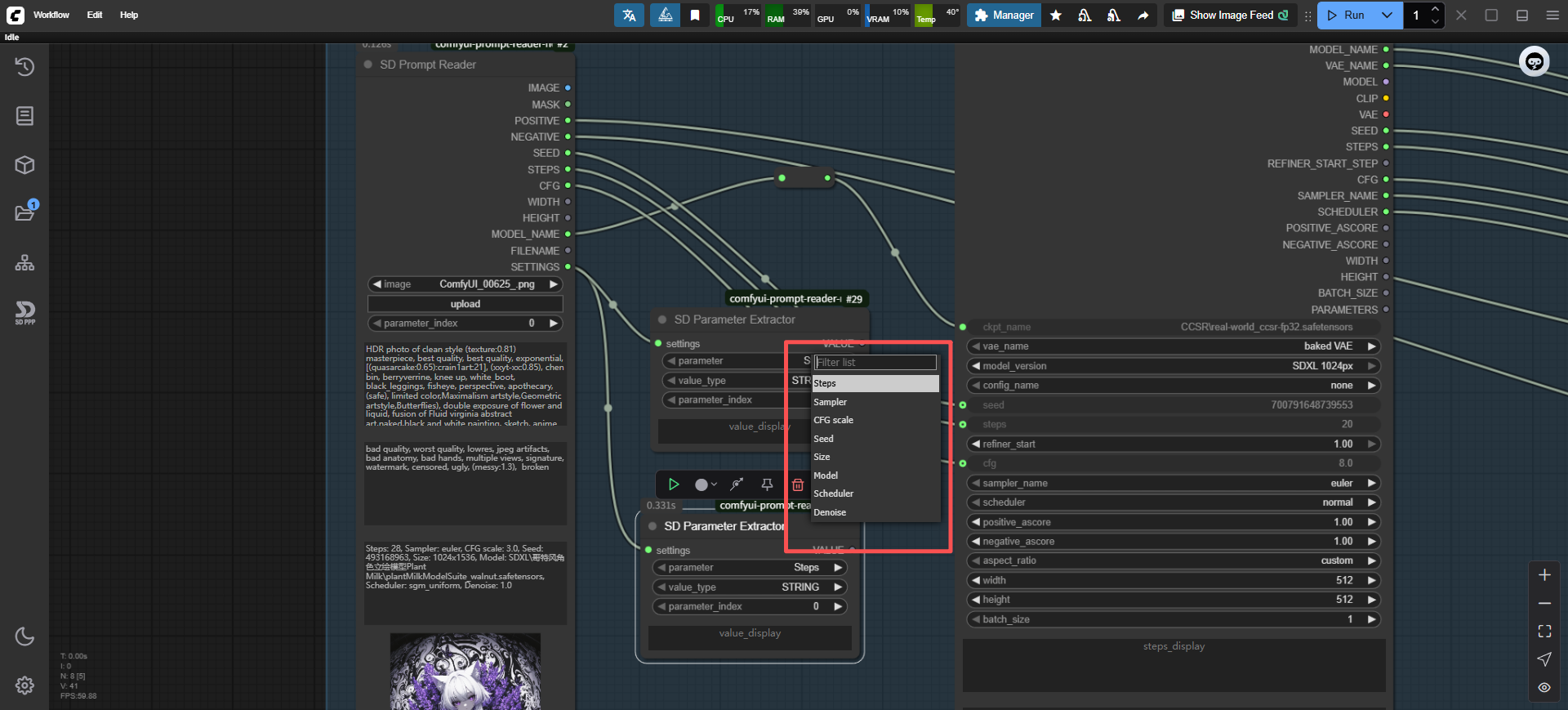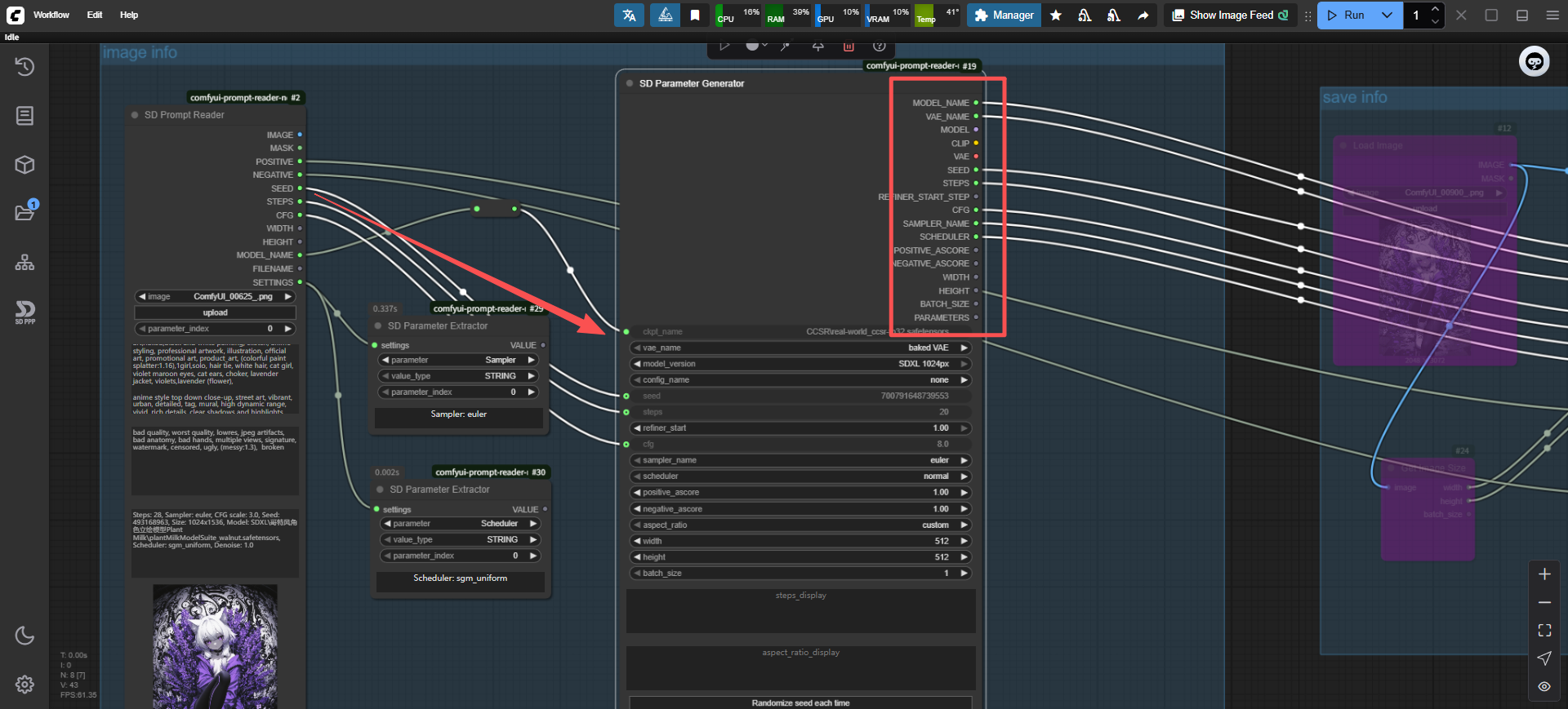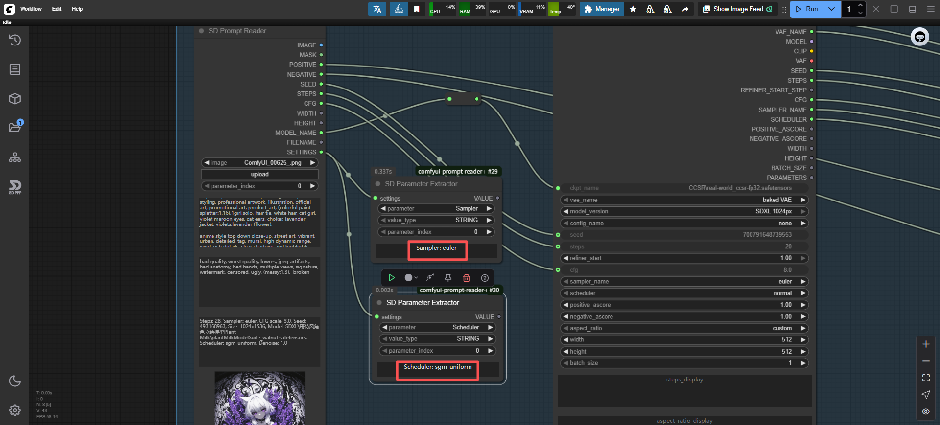 至于SD Parameter Extractor这个是用来处理那些没法输出的信息(例如Scheduler,Sampler)