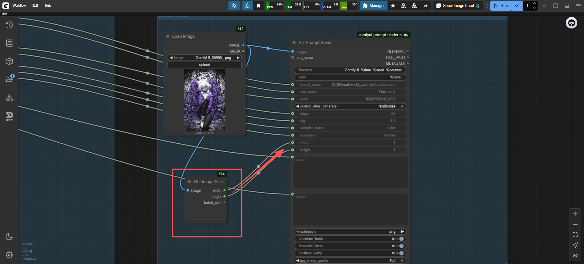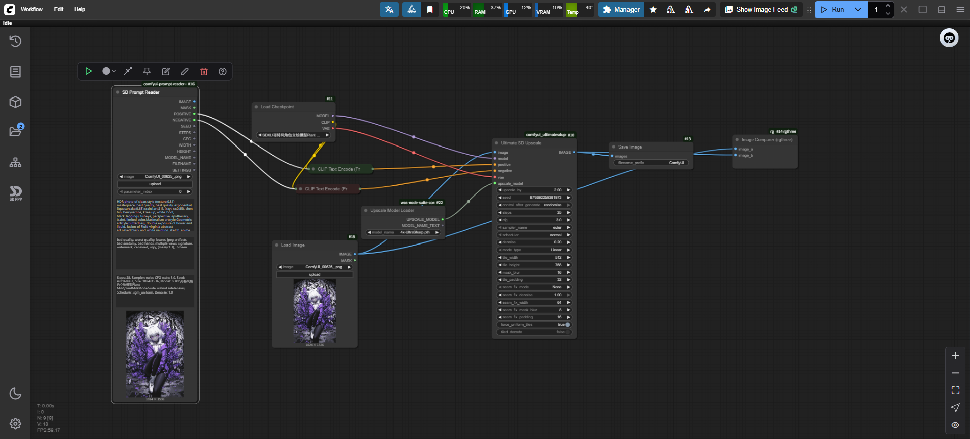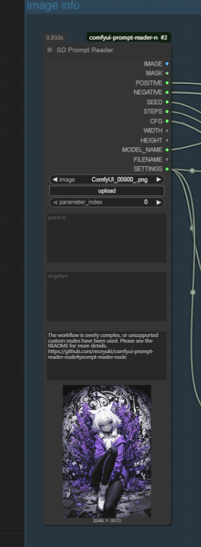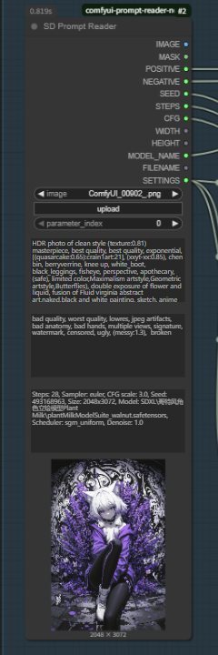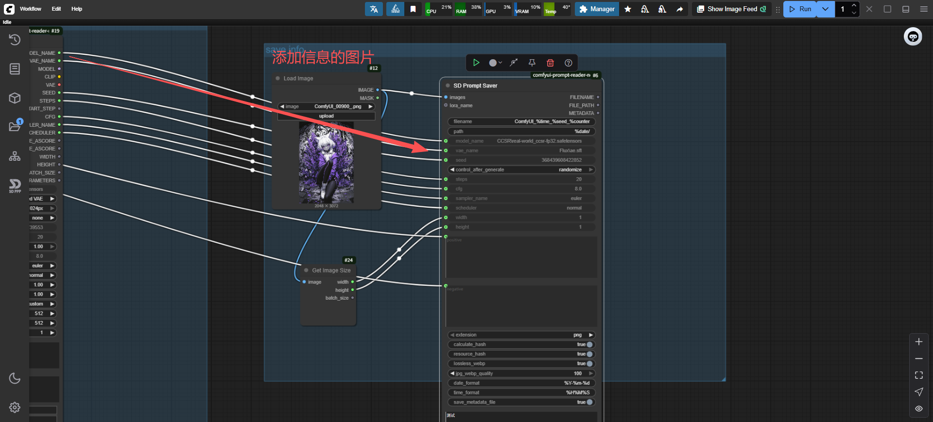 里面的SD Prompt Reader可以读取图像的元数据,于是我想看看放大后的图片能不能读取出来(工作流还是存在的)
