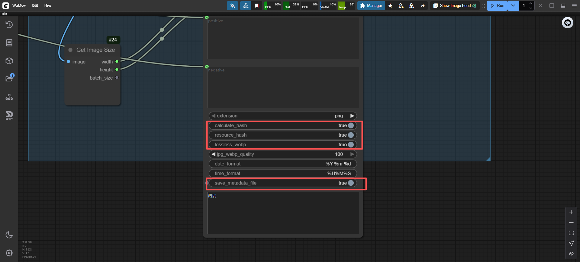 文件格式最好选择png(可以保存工作流),这几个hash是给你上传C站的时候识别的,最后那个开起来就还会单独生成一份数据文件
