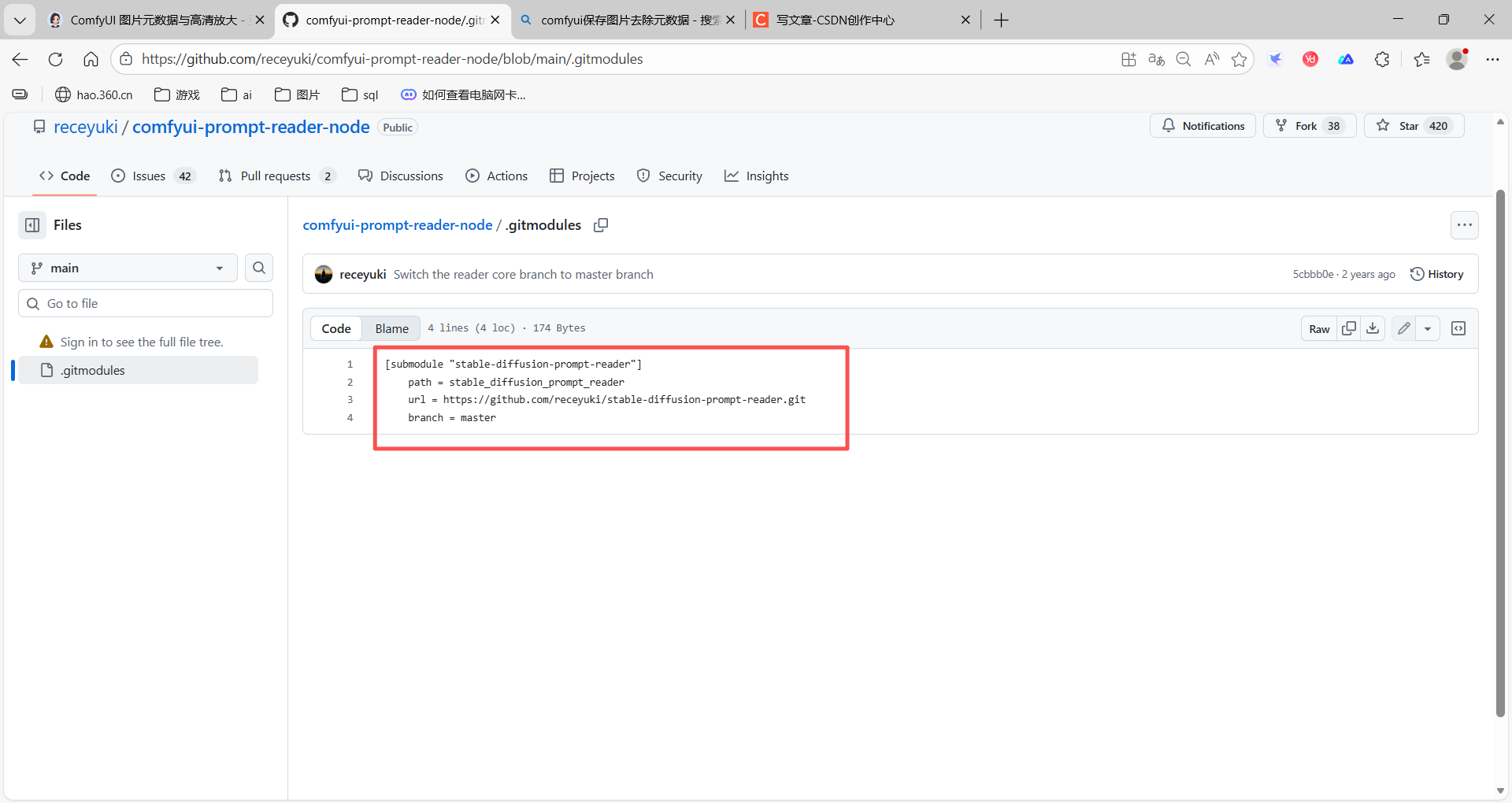 直接查看.gitmodules,真的有子模块,看来是子模块安装问题,我们重新安装一下