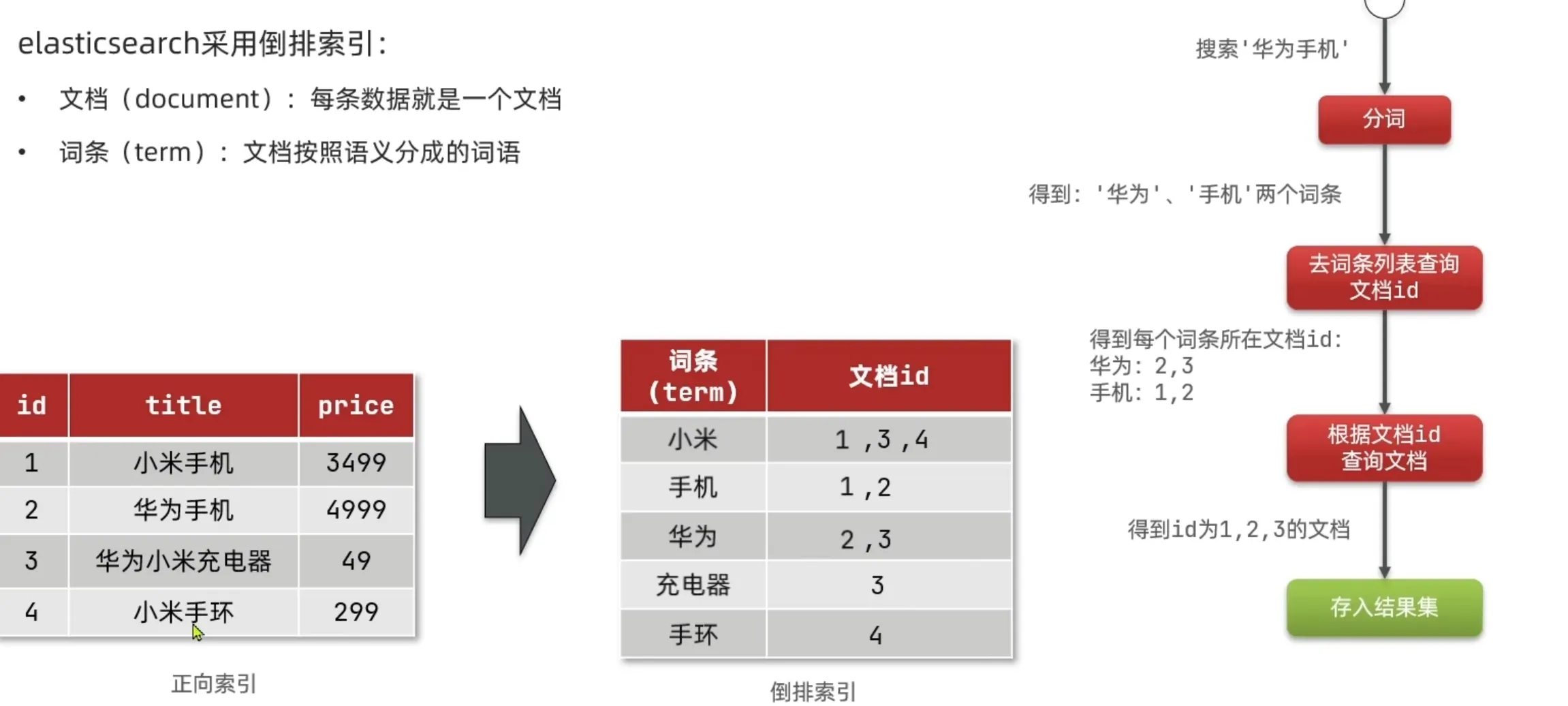 - 词条(term):文档按照语义分成的词语------------词条不会重复