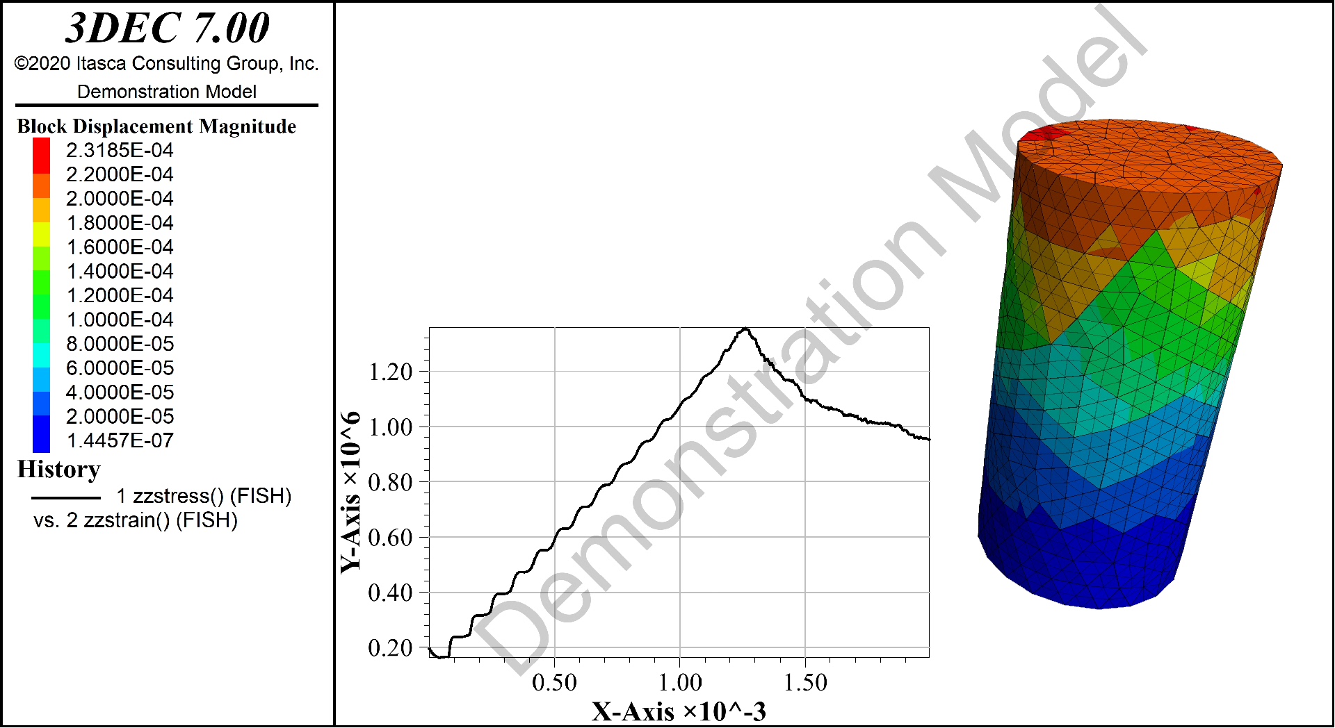 3dec7.0单轴压缩实验。 3dec三轴试验 内容包含计算命令流,计算结果,计算结果真实有效,该命令对相关实验模拟具有一定参考性。