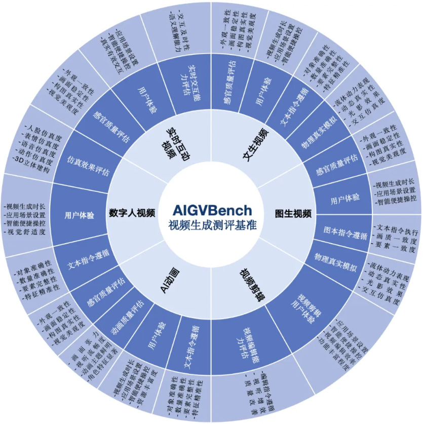 当前行业形成了以VBench和SuperCLUE为核心的标准化评估基准,引领评估方向从"视觉表面"向"内在逻辑"深化: