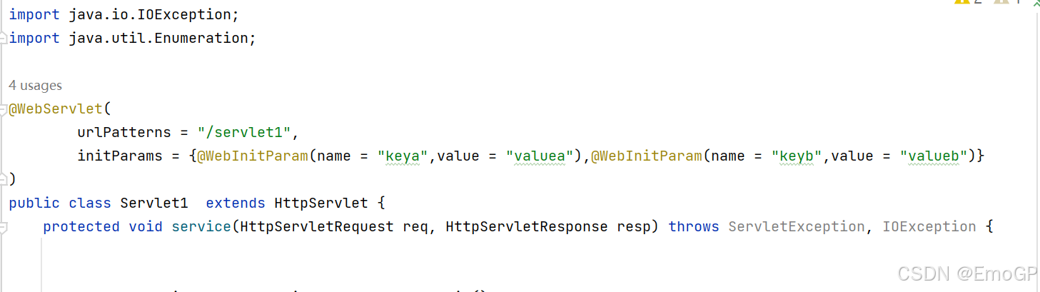 - 容器会为每个Servlet实例化一个ServletConfig对象,并通过Servlet生命周期的init方法传入给Servlet作为属性