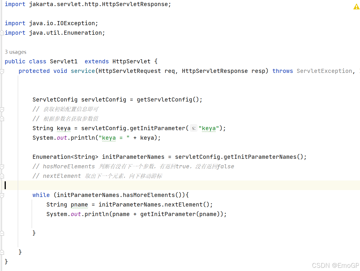 Enumeration<String> initParameterNames = servletConfig.getInitParameterNames();
