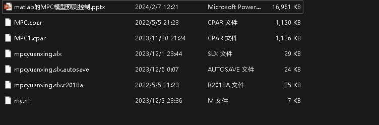 .m文件则是Matlab的文件啦,这里面就是我们编写控制算法的地方。以MPC控制算法为例,我们可以在.m文件里定义MPC控制器的参数,像预测时域、控制时域、权重矩阵等。