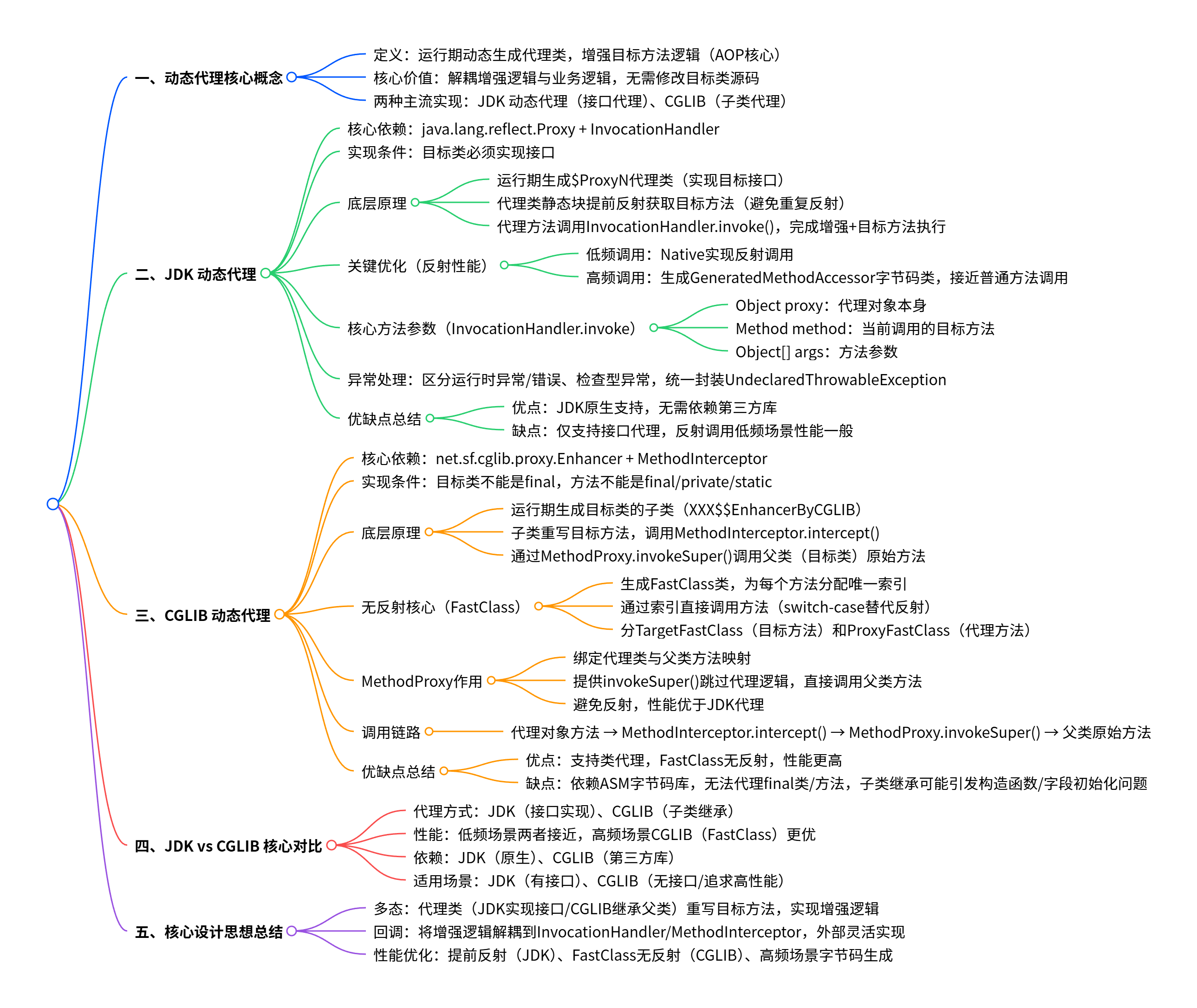 | 特性/维度 | JDK 动态代理 | CGLIB 动态代理 |