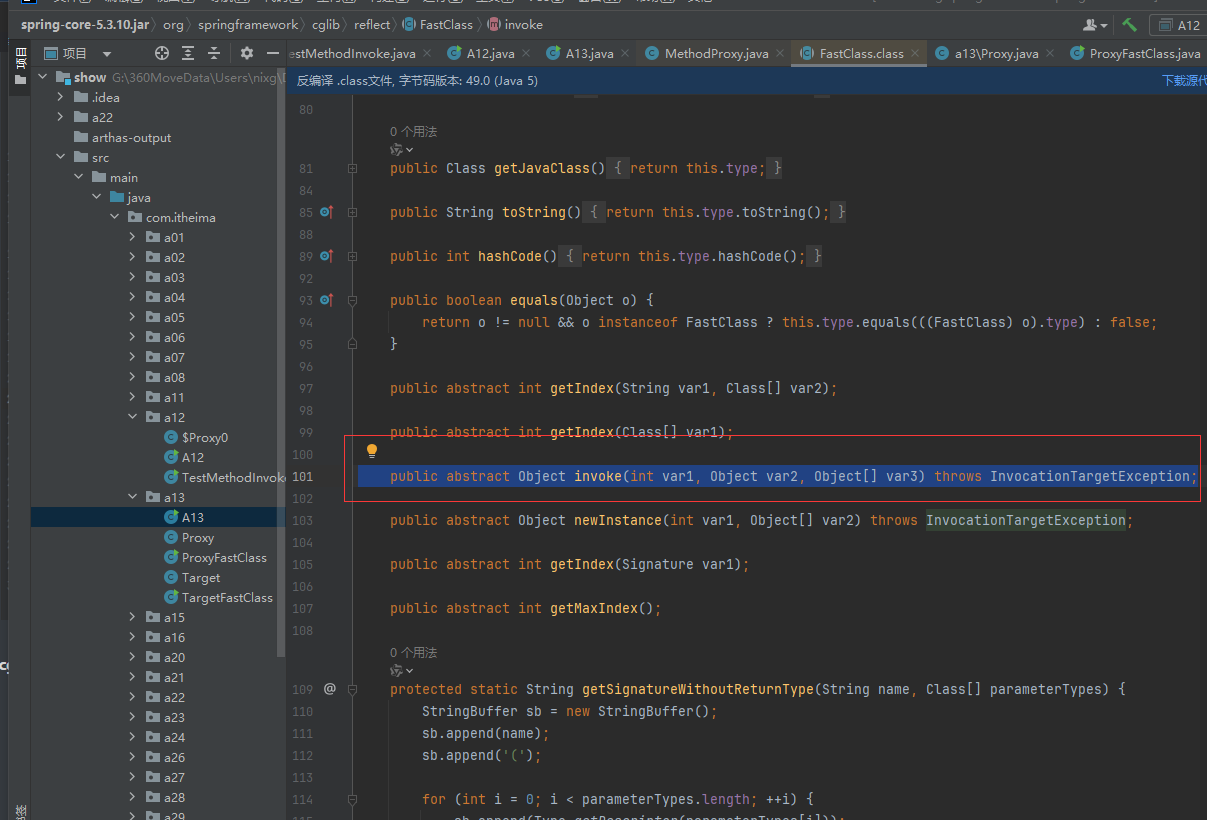 fastClass.invoke(index, new Target(), new Object[]{100});