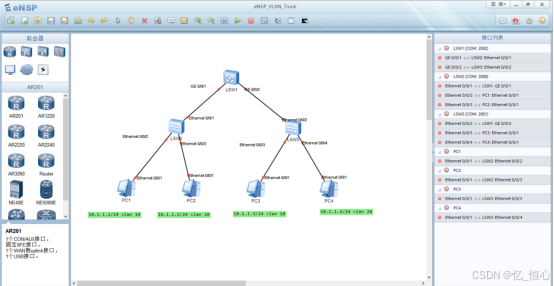 三、实战案例1:基础VLAN划分与Access/Trunk配置