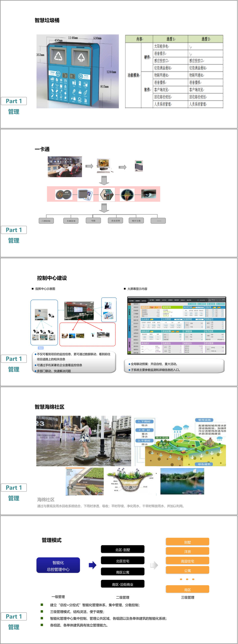 社区管理体系注重效率与人性化。以多模式服务整合日常生活需求,O2O 模式聚合本地服务,LBS 模式依托地理位置提供精准支持,资讯社交模式增强居民粘性,移动支付模式简化缴费购物流程。物业云管理平台实现多维度优化,通过线上信息推送降低账单打印派送成本,实时接收业主报修提升响应效率,共享广告平台创造额外收益,APP 平台还集成信息推送、优惠券发放、便民服务查询等功能。同时,搭建 "总控 + 分控" 三级管理体系,集中管控公共区域与建筑智能化系统,各区域保留独立管理能力;智慧交通通过人车分流、绿色交通网络与反向寻车系统提升通行效率;信息发布中心多渠道推送多元信息,且支持分级权限管理;智慧垃圾桶、一卡通与总控调度中心强化环境管理、身份识别与安全应急响应,海绵社区设计则实现雨水循环利用,践行绿色理念。