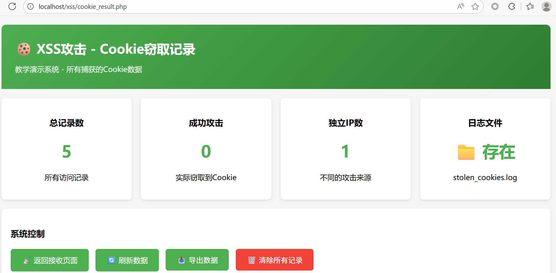 注意DNS解析,所以采用本地测试,将文件移入localhost内的xss文件中,搜索时localhost/xss/cookie.php