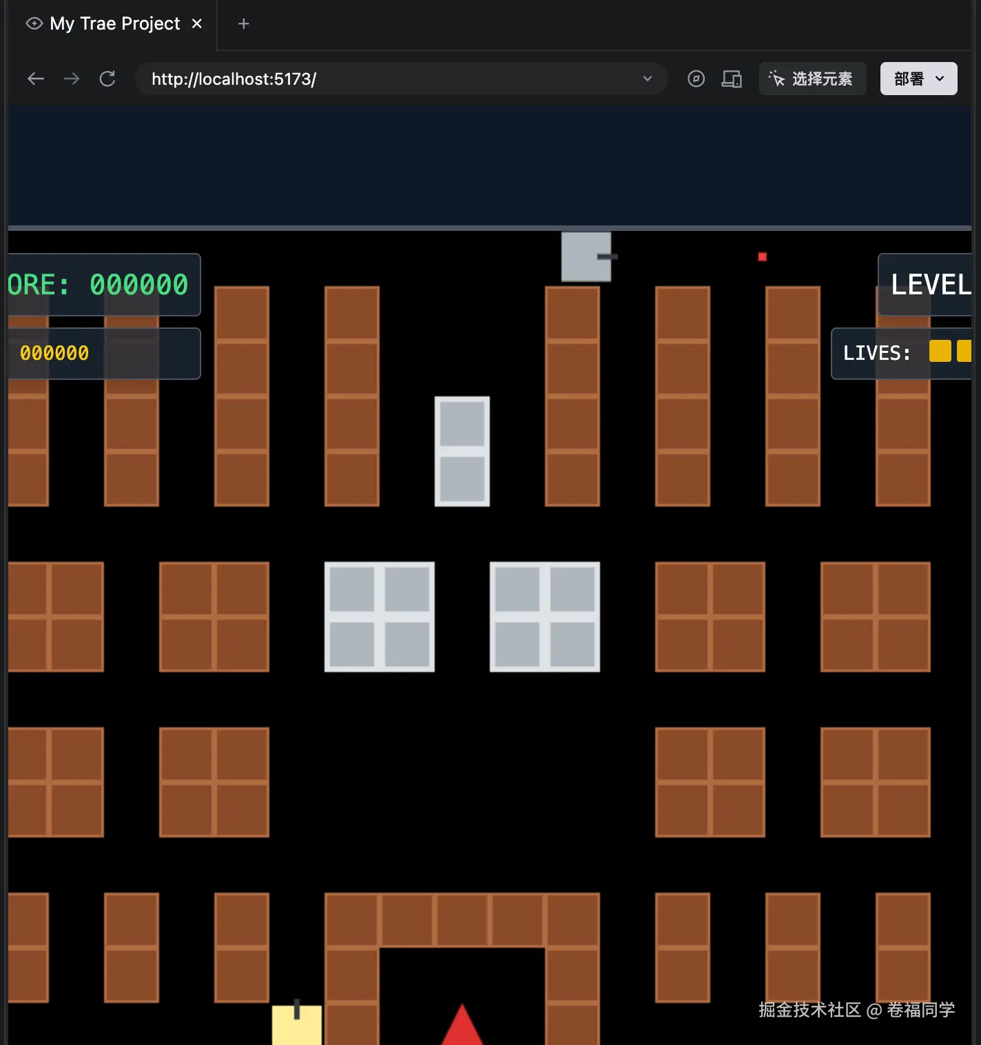 现在AI编程工具已经能做到一句话的需求生成一个完整的项目了,今天我们用Trae solo来试着复刻小时候的游戏《坦克大战》,并且部署上线,下面是演示效果和地址:
