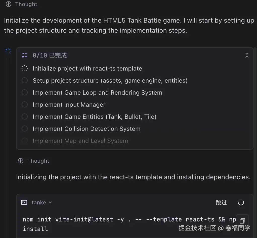 接着我们可以去喝喝茶,静静等待Trae完成工作就行。妥妥的领导指挥打工牛马的感觉