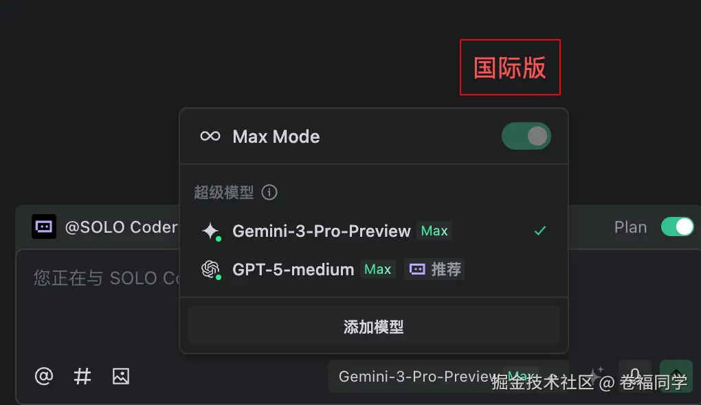 国际版和国内版Trae的区别主要是使用的模型不同