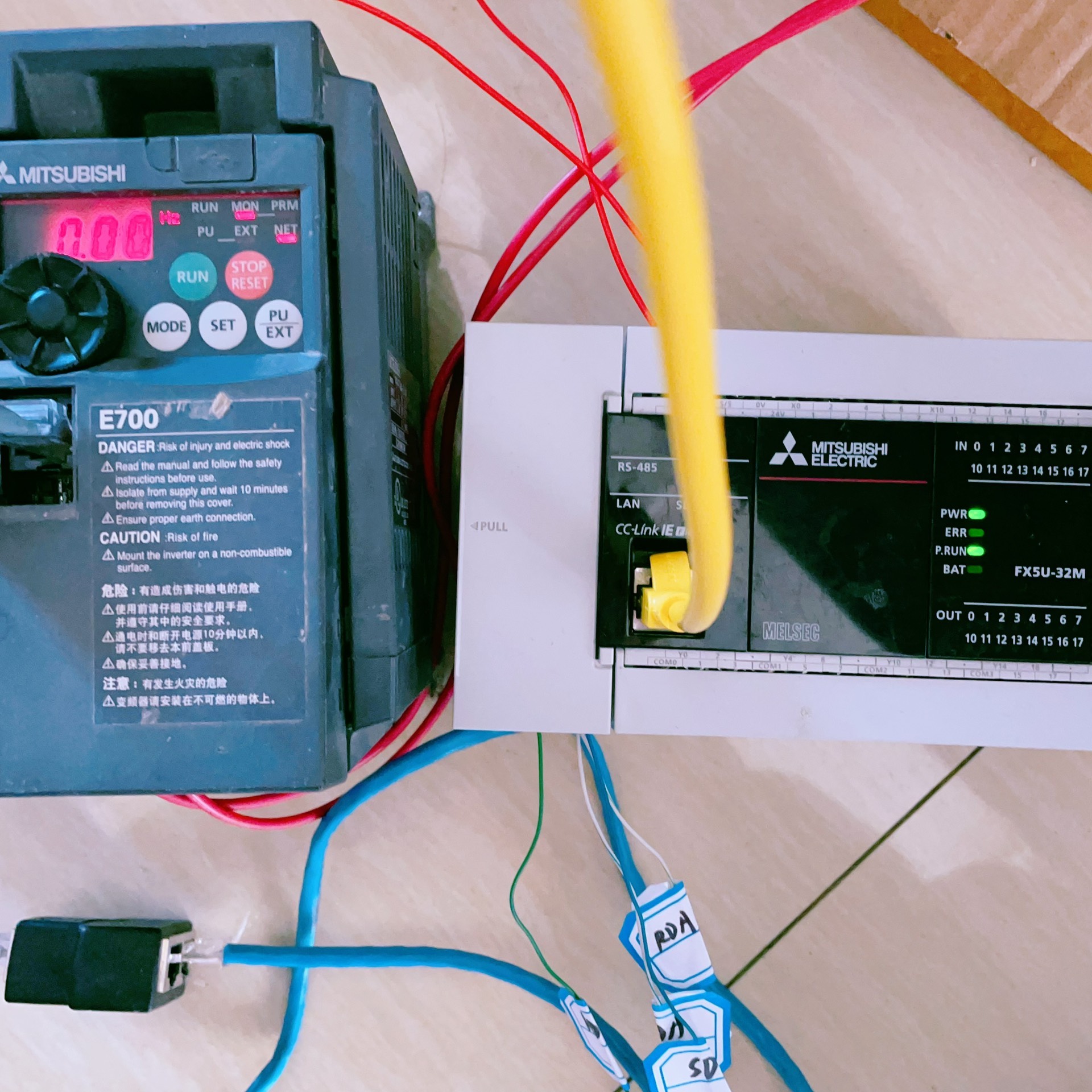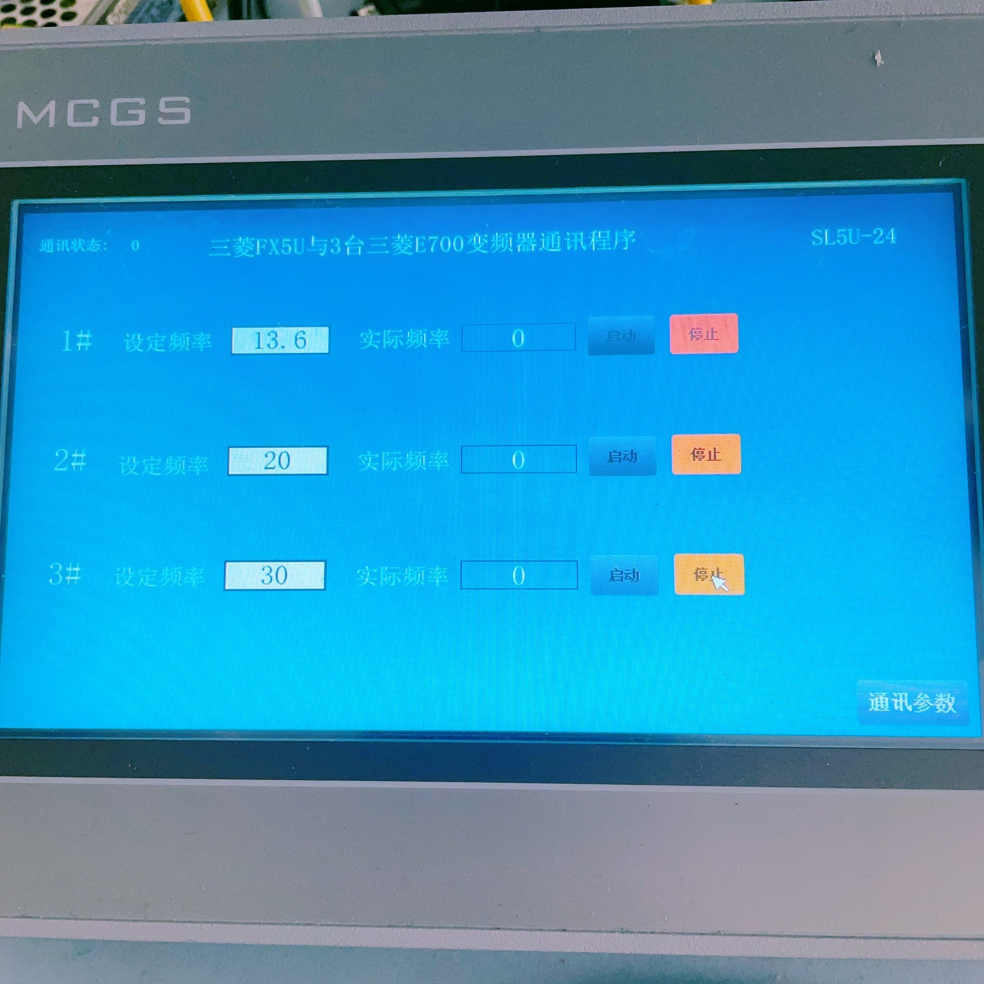 最近完成了一个挺有意思的项目,用三菱FX5U的PLC实现与3台三菱E700变频器的modbus通讯,还搭配了昆仑通态TPC7022NI触摸屏,功能也挺丰富,能在触摸屏上设置每台变频器频率、监控输出频率以及控制启停,而且已经通过测试稳定运行啦,现在就来跟大家分享分享。