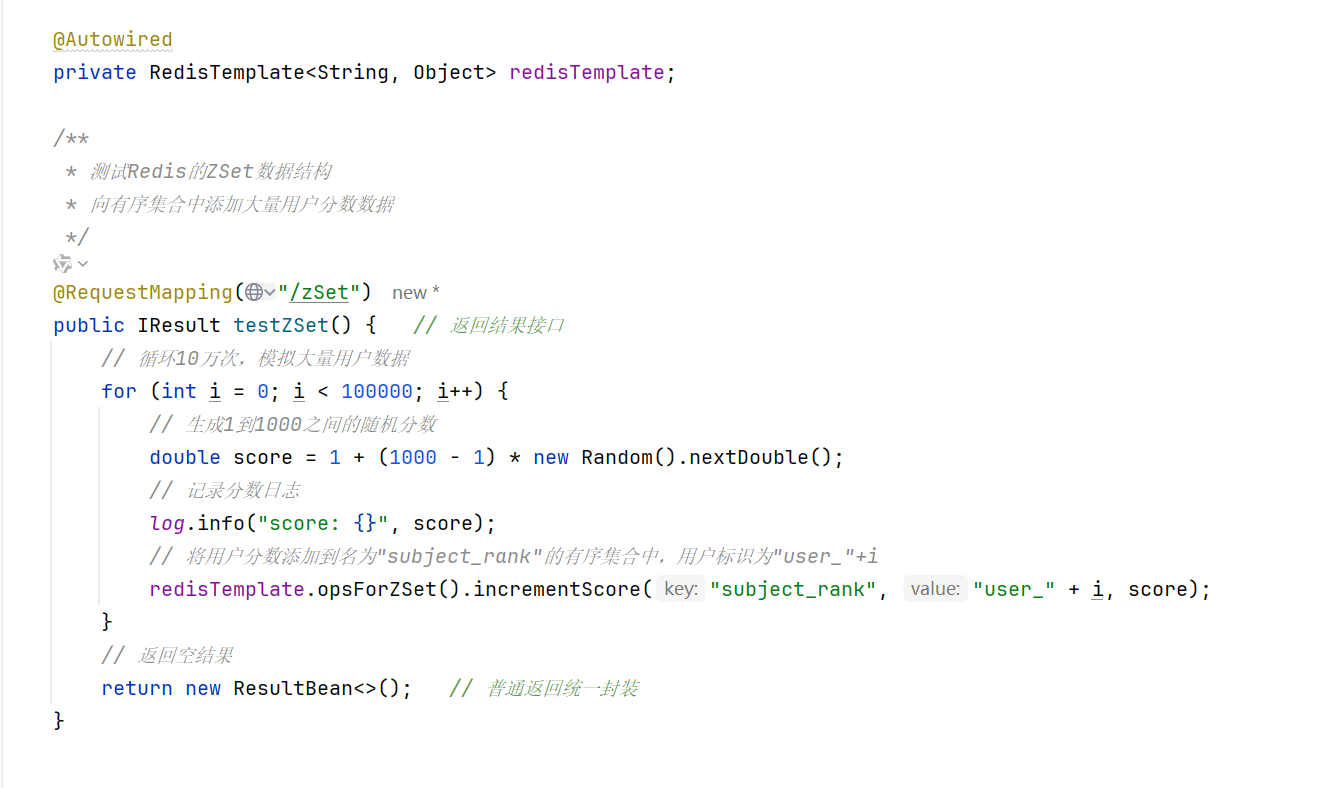 redisTemplate.opsForZSet().incrementScore("subject_rank", "user_" + i, score);