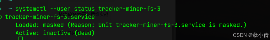 如果看到类似dead或者stop等字样,说明禁用成功。禁用后有什么不良影响吗,有,但是通常不重要。禁用后GNOME 全局搜索无法搜索"文件内容",只能按文件名,但是不影响文件读写、不影响开发、不影响终端工具。对开发者 / 高性能桌面用户来说,这是净收益。