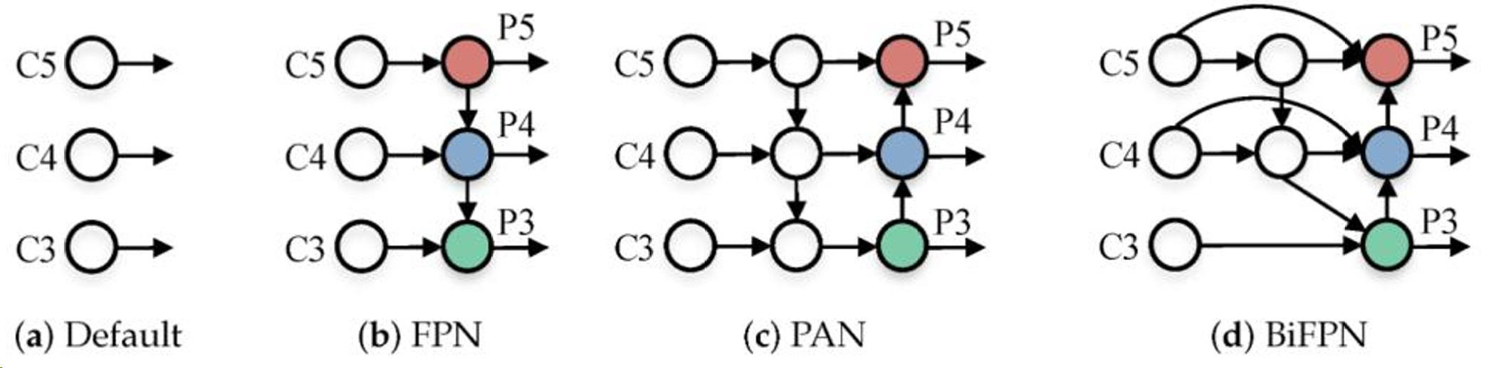 尽管额外检测头有优势,但其计算和内存开销仍然是一个挑战。为解决此问题,TPH-YOLOv5++ [11]引入了CATrans模块,作为多个检测头的替代方案,在保持计算效率的同时保留了高层特征信息。类似地,在HIC-YOLO框架[8]中,提出了重新设计的检测头与骨干网络中的CBAM模块相结合,以增强小目标检测精度。另一项研究[12]通过对YOLOv5s进行结构修改,用BiFPN[13]替换颈部中的PANet[13],并提出了一种针对小目标检测的新损失函数。此外,在[14]中,通过将瓶颈块集成到骨干网络中来提高检测精度,使其能够更好地从浅层提取特征。该研究还引入了重新设计的检测头以及其他架构优化,以进一步增强小目标检测。