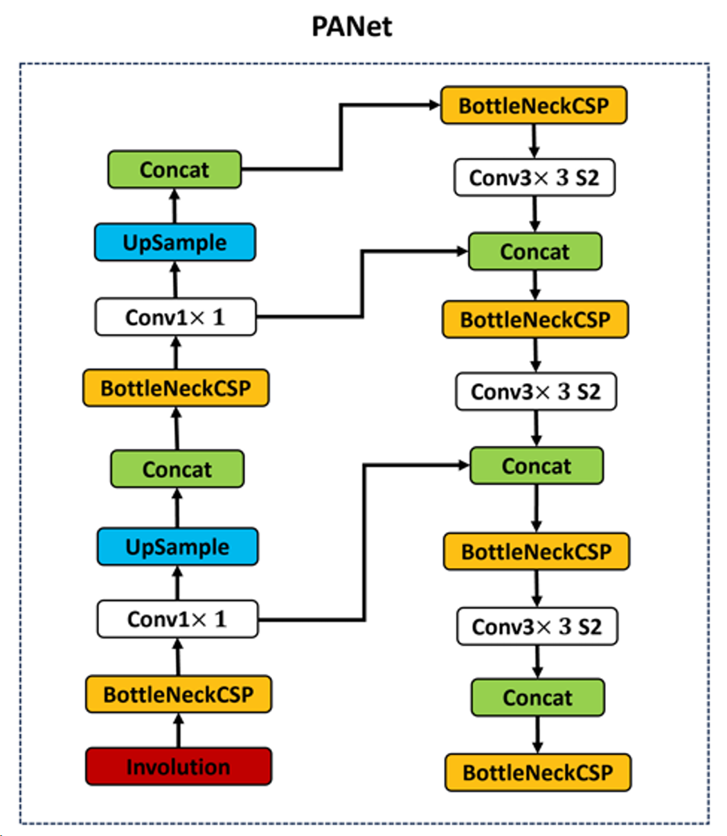 Gold-YOLO[20]利用聚集-分发(Gather-and-Distribute)机制,通过融合多尺度特征图来提高精度。该机制从所有主层次聚集全局信息,将其组合,然后返回到每个层次以改进检测。其他研究,如PPYOLO[21]和PPYOLOE[22],专注于通过修改颈部组件和优化特征图融合策略来提高精度。