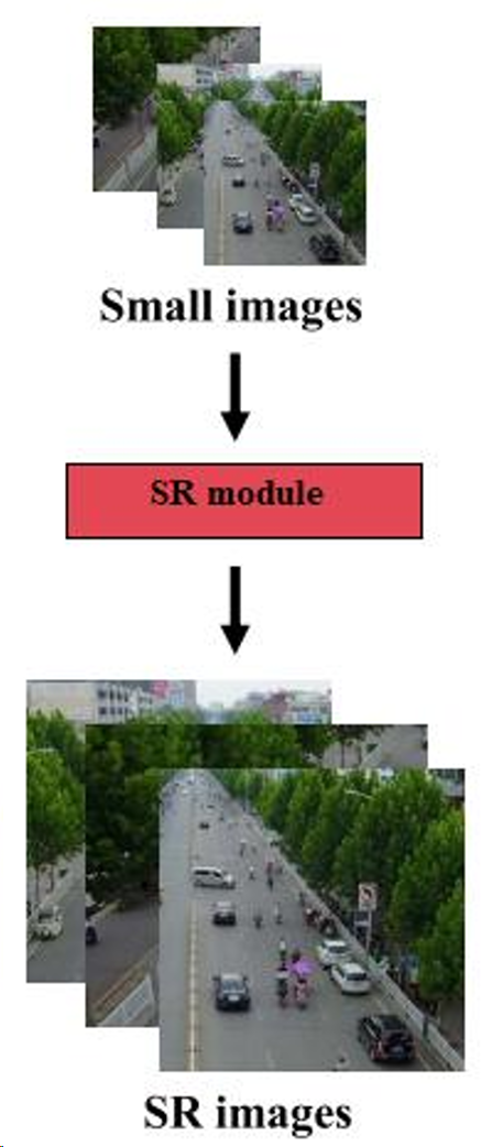 为了抵消这一点,最初的解决方案涉及引入超分辨率网络架构来提升图像质量。SR网络旨在从低分辨率对应物生成高分辨率图像。将SR模块集成到网络架构中以支持训练和测试: